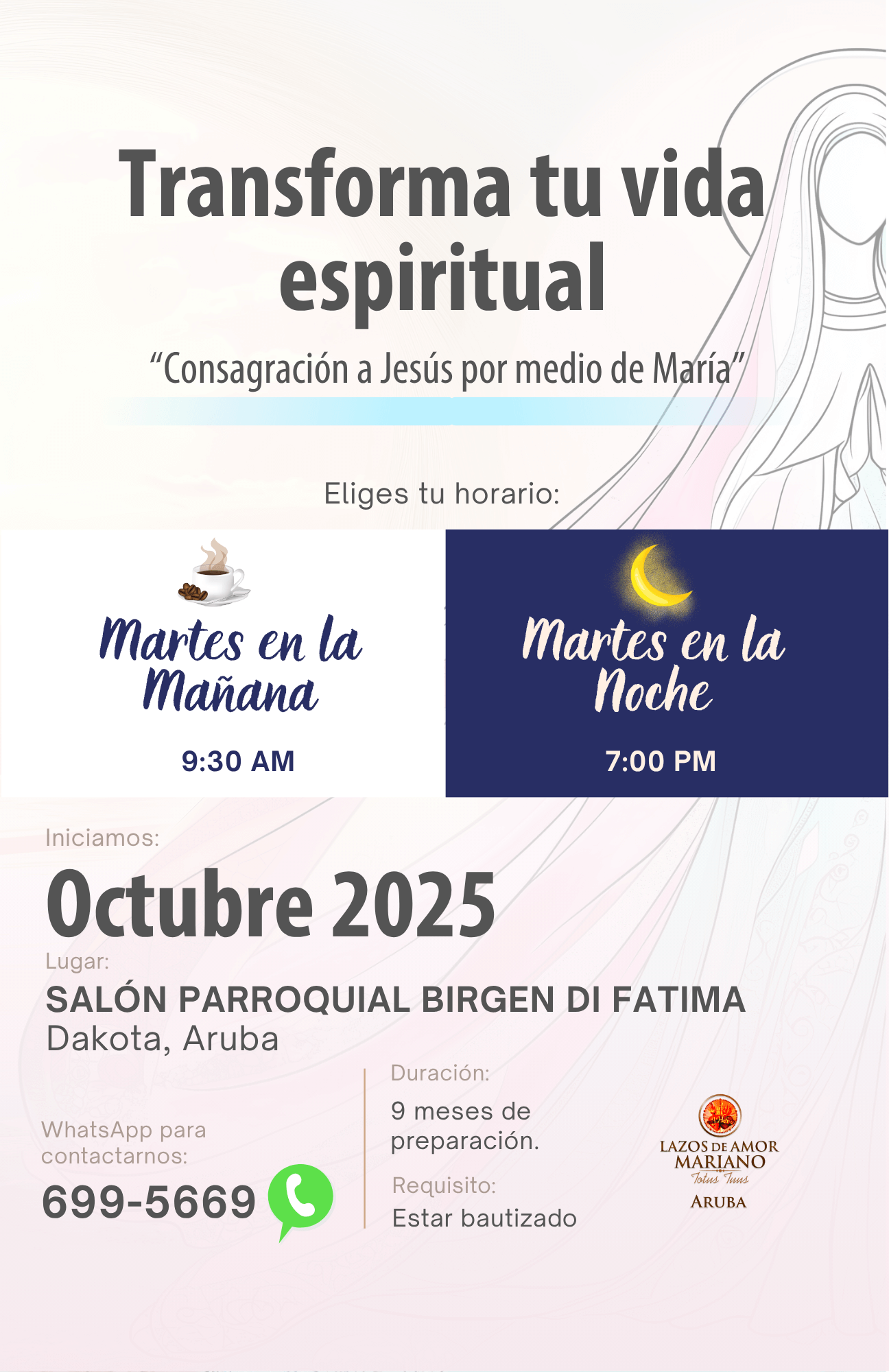 Todos los Martes. Al terminar Eucaristía. (Aprox 7:30 pm)